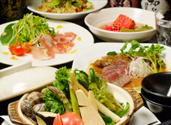 ■野菜、スモーク、豆富等手作りの為に、仕入れ状況等で内容の変更がありますので、一例としてご覧ください。